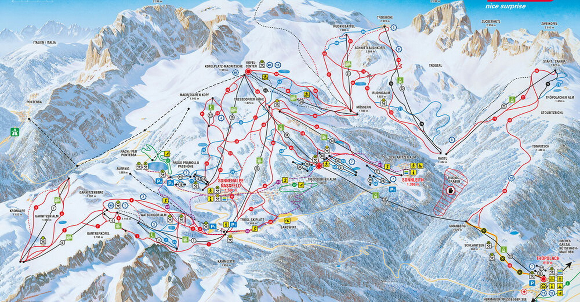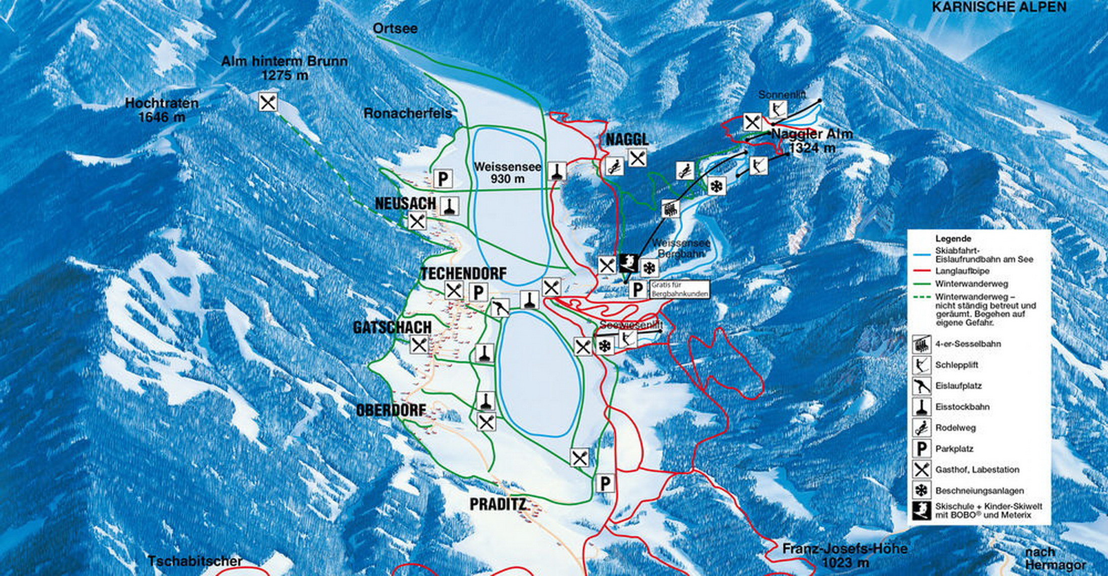 Landelijke ligging met een fraai uitzicht op de Karnische Alpen nabij het Skigebied Nassfeld in het Gailtal Karinthië. De appartementen zijn volledig op het zuiden gericht en genieten dus altijd veel zon. Er is een goede ontsluiting naar het ca. 15 minuten verder gelegen skigebied Nassfeld met meer dan 105 Km pistes. Het object ligt op 5 km van Hermagor, een fraai toeristisch provinciestadje met alle nodige voorzieningen voor een grote regio incl. een ruim culinair aanbod. Verder ligt het slechts 10 min te voet van het zwem en recreatiemeer de Pressegger See en slechts 25 Km van het bekende Weissensee, diverse golfterreinen en paardrijdmogelijkheden zijn in directe omgeving eveneens voorhanden.